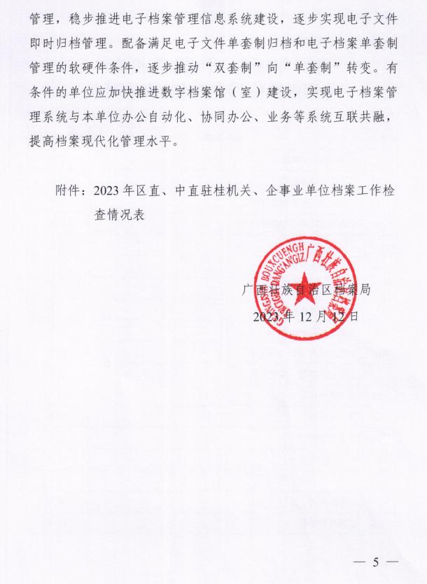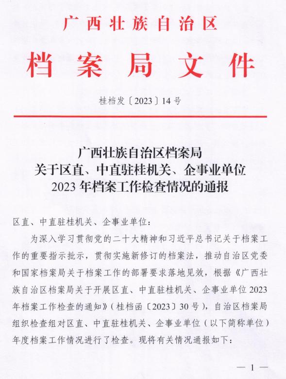 近日,自治区档案局发布《关于区直、中直驻桂机关、企事业单位 2023年档案工作检查情况的通报》(桂档发〔2023〕14号),万象城官网荣获2023年档案工作检查优秀等级。