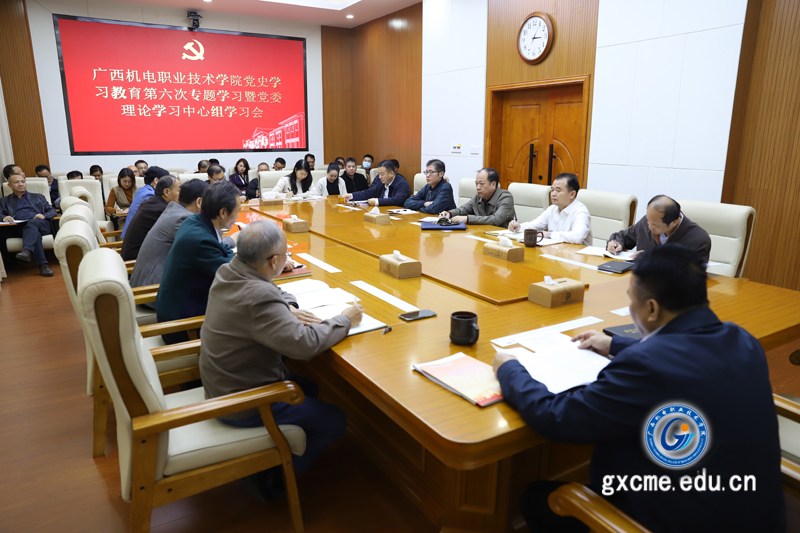 赖晓桦校长充分肯定了同志们的学习和发言。他指出,党的十九届六中全会重点研究了全面总结党的百年奋斗重大成就和历史经验问题,审议通过了党的第三个历史决议,对确保全党步调一致向前进具有重要意义。学习宣传贯彻党的十九届六中全会精神,应当从此时此刻起,以党委理论学习中心组的学习作为开头,迅速在全校师生中掀起学习贯彻党的十九届六中全会精神热潮,这是当前和今后一个时期的重大政治任务。各部门、二级学院要以史为鉴、开创未来,埋头苦干、勇毅前行,结合党史学习教育,立足岗位和本职工作,开展有特色、见实效的学习活动,使全校党员干部职工把思想统一到全面落实高职教育重点任务和重点工作上来,为谱写机电高质量发展新篇章作出新贡献。