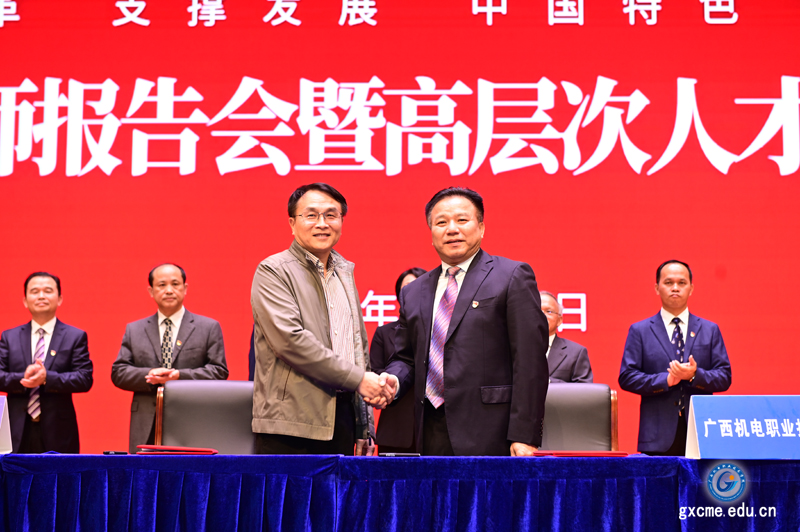 在签约仪式上,广西工业与信息化厅二级巡视员陆爱平代表主管部门对学院给予了充分肯定。她在讲话中指出,顺应新时代高等职业教育改革发展趋势,大力引进国家教学名师等高层次人才,不仅有利于形成推动学院实现跨越式发展的强大合力,而且有利于为加快建设壮美广西多做贡献,为职业教育事业发展再铸新辉煌。