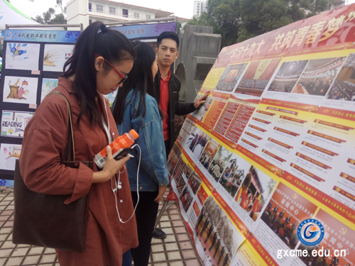11月8日,图书馆联合团委启动了“学习十九大 ▪共筑青春梦”主题校园巡展活动。本次展览分为图片展和馆藏图书展两个部分。图片展全面回顾了中国共产党历次重大会议的基本情况、主要内容及历史意义,再现了近一个世纪以来中国共产党所取得的伟大成就。主题书展主要挑选了《习近平谈治国理政》、《历史是最好的教科书》等近30种馆藏图书进行集中展示。