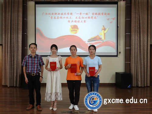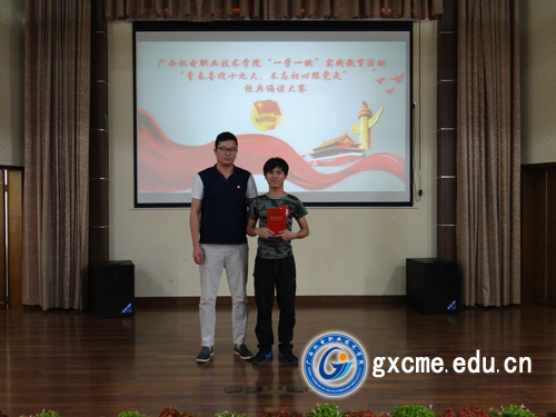 本次大赛经过层层选拔,最终10名选手晋级决赛,选手们声情并茂的诵读,浓浓的爱国情深深感动了在场的每一位师生。经过两轮激烈的比拼,最终设备1602班张立忠荣获一等奖。数控1601班周婷婷、数控1601班廖冰儿荣获二等奖。模具1602班谢霜薇、模具1601班程蒙雪、设备1601班梁翠荣获三等奖。通过学院易班投票,制造1602班周克鲁获得了本次比赛最佳人气奖。