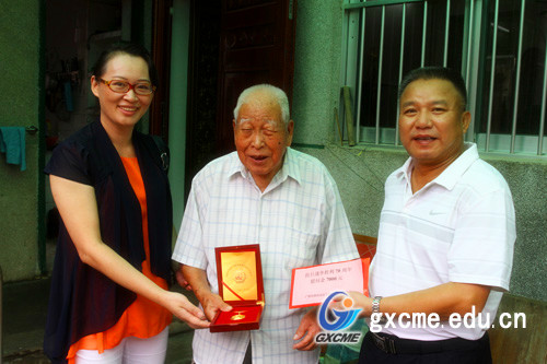 今年是中国人民抗日战争胜利70周年,8月27日,自治区工业和信息化委员会副主任、党组成员徐莉青一行到我院慰问99岁的抗战老兵李国栋。学院党委副书记、院长赖晓桦,副院长梁庆杰等陪同慰问。