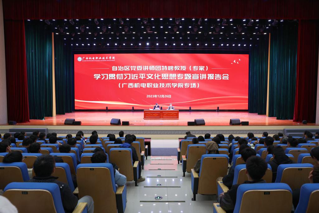12月26日下午,根据自治区党委宣传部、自治区党委讲师团安排,自治区党委讲师团特聘教授(专家)、广西产业技术研究院党委委员、人工智能与大数据应用研究所所长叶波到万象城官网作学习贯彻习近平文化思想专题宣讲报告。校党委副书记陈科鹤出席报告会。