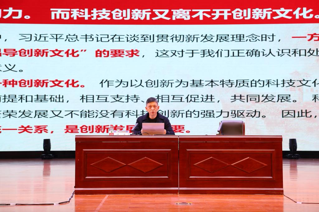 叶波以“以习近平文化思想指引科学文化建设”为题,从习近平文化思想的重大意义、科学与文化的辩证关系、加强新时代科学文化话语体系建设、强化科学文化公共服务功能、文化创新与科技创新等方面为师生们深入浅出介绍了习近平文化思想和科技文化发展的情况,为师生们深刻理解习近平文化思想的核心要义,丰富内涵和实践要求提供了指引。报告内容结合工作实际和最新的研究趋势展开,既有理论的总结,也有实例的解析,具有很强的针对性和感染力,对于师生们深入学习贯彻习近平文化思想和习近平总书记对宣传思想文化工作的重要指示精神,贯彻落实全国、全区宣传思想文化工作会议精神具有重要作用。