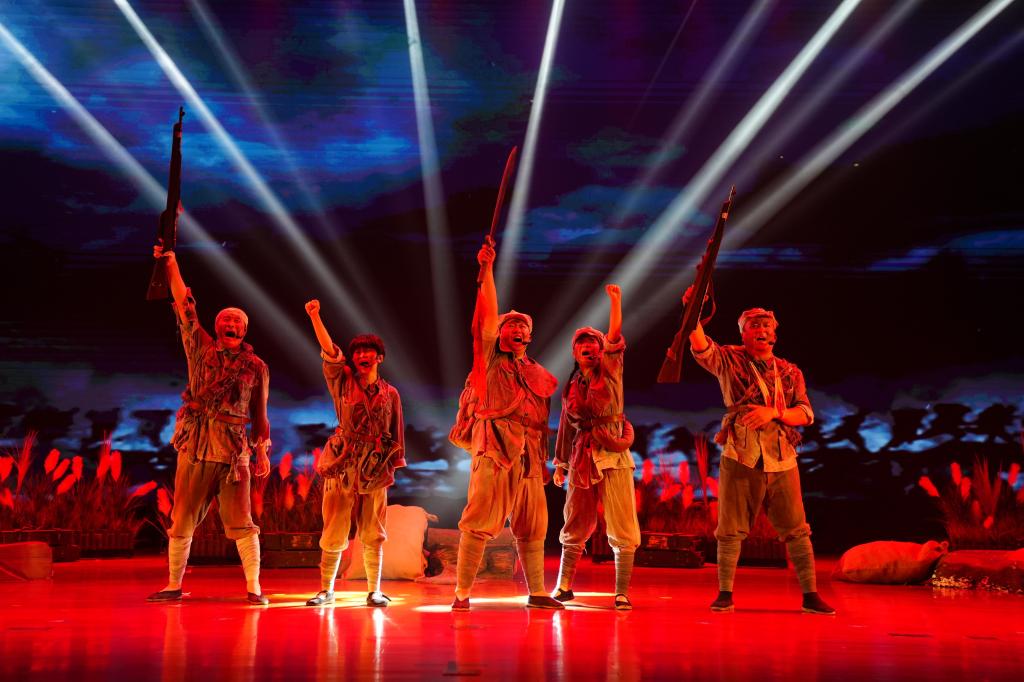 演出前,该剧导演介绍了这部红色话剧的创作初衷。随着灯光渐暗,大幕缓缓拉开,震撼人心的《湘江1934》正式上演。故事里的小红军张六娃离开父母告别家乡,刚一入伍就参加到了湘江战役那场惨烈的战斗中,话剧用他以及战友的视角展现革命战争里的亲情、战友情和大爱情怀,故事里的人物是千千万万红军战士的缩影。演员们生动的演绎和深情的叙述,将红军战士们面对敌人的围追堵截时,依然顶着炮火勇往直前的英勇形象,以及与亲人生死离别时向死而生、踏泪前行的悲壮抉择都展现得淋漓尽致。观众们仿佛穿越时空,亲历了那场关系着红军生死存亡的一战。湘江战役中革命先烈们无私无畏的英雄气概、视死如归的斗争信念、勇往直前的大无畏精神让在场师生感到深深震撼!