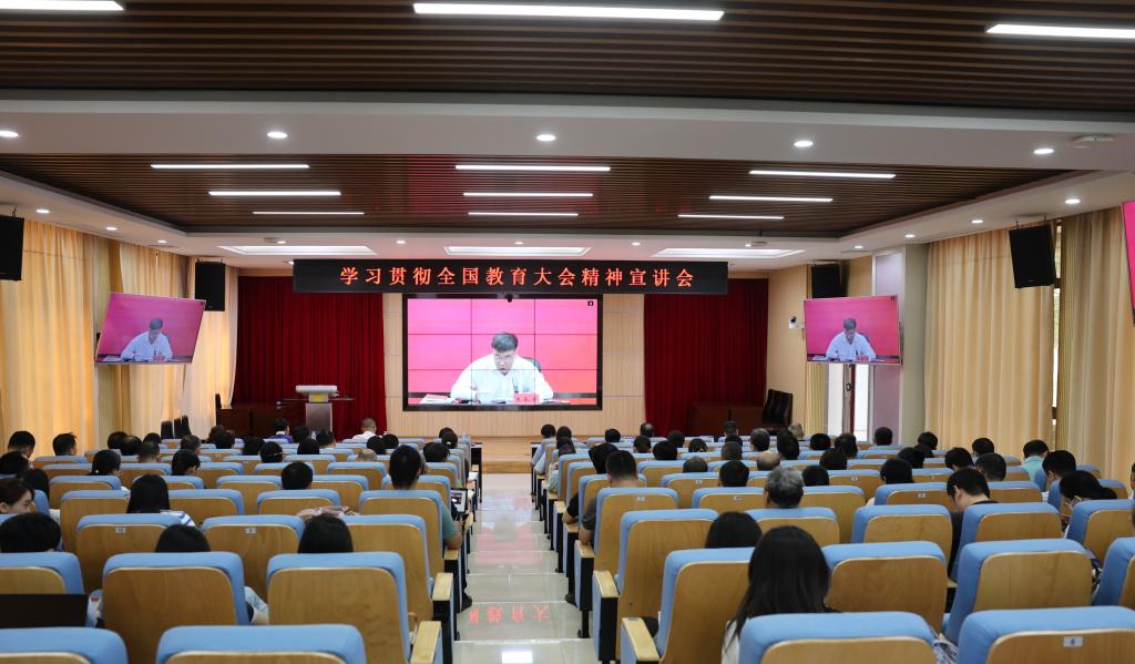 王承文主要围绕“深刻学习领会习近平总书记在全国教育大会上重要讲话的重大理论意义、实践指导意义”“全面认识习近平总书记阐述的教育本质属性、擘画的教育强国战略图景”“牢牢把握习近平总书记指出的教育强国建设科学规律、部署的战略任务和重大举措”三方面开展宣讲,重点就“为什么建设教育强国、建设什么样的教育强国、怎样建设教育强国”等三个问题作了全面系统阐释和解读。