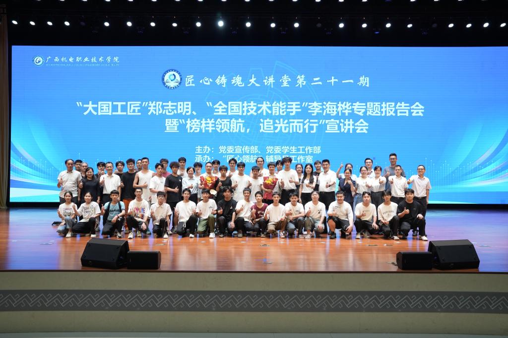 为大力弘扬劳模精神、劳动精神、工匠精神,充分发挥工匠人才的示范引领作用,9月8日晚,学校在弘毅楼大礼堂举办“匠心铸魂大讲堂”第二十一期“大国工匠”郑志明、“全国技术能手”李海桦专题报告会暨“榜样领航,追光而行”宣讲会。学校党委书记黄小敬出席报告会,党委副书记程云燕主持报告会。