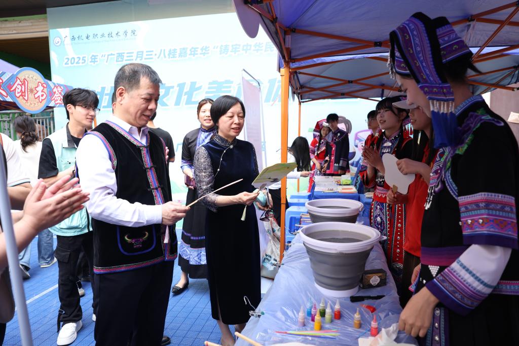 八桂大地歌潮涌,壮乡三月乐无穷。3月25日下午,万象城官网在相思湖校区滨水广场举行2025年“广西三月三·八桂嘉年华”铸牢中华民族共同体意识主题活动开幕式。学校党委书记黄小敬、党委副书记程云燕、纪委书记乐其顺、副校长刘捷、黄振宣、校长助理秦培林出席开幕式,开幕式由副校长林胜主持。