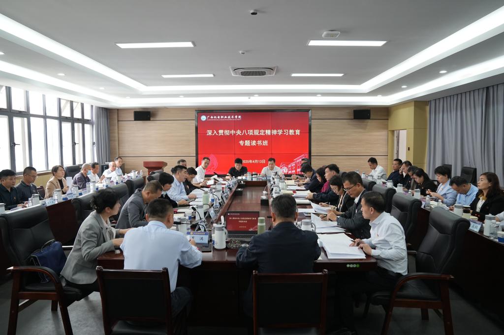 4月13日—14日,学校党委举办深入贯彻中央八项规定精神学习教育读书班和专题辅导报告会。校党委书记黄小敬主持开班式并讲话,校党委委员、纪委书记乐其顺主持报告会和结业式,自治区纪委监委党风政风监督室副主任邓文婷同志应邀作专题辅导报告。学校党委领导班子全体成员、校党委理论学习中心组成员、学习教育工作专班成员参加相关活动。
