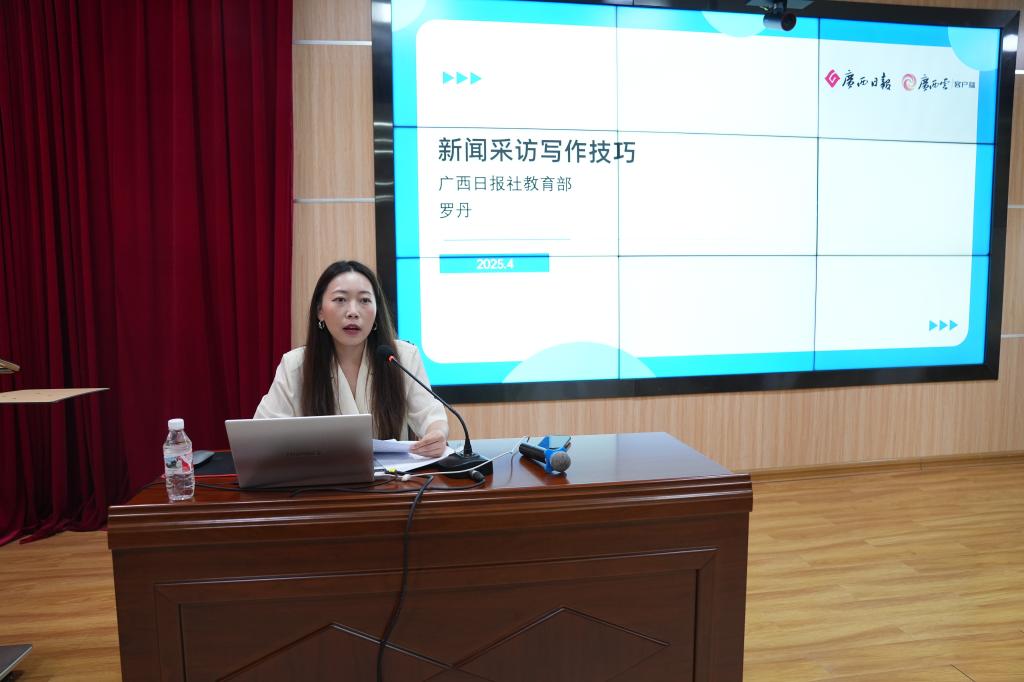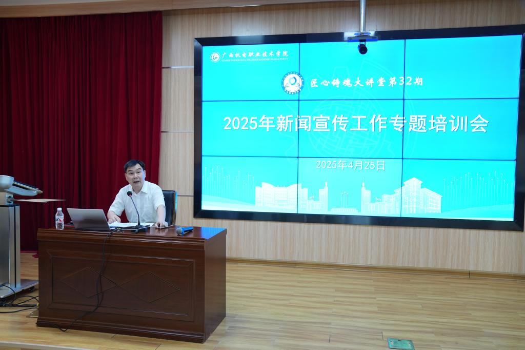 为进一步加强学校宣传思想文化工作队伍建设,提升新闻宣传工作人员的媒体素养、业务水平和创新能力,4月25日,学校在第二学术报告厅举办2025年新闻宣传工作培训。本次培训邀请广西日报社记者罗丹、梁凯昌现场授课。校长助理、宣传部部长秦培林主持培训会,各二级学院、职能部门的负责人、宣传骨干和学生代表参加培训。