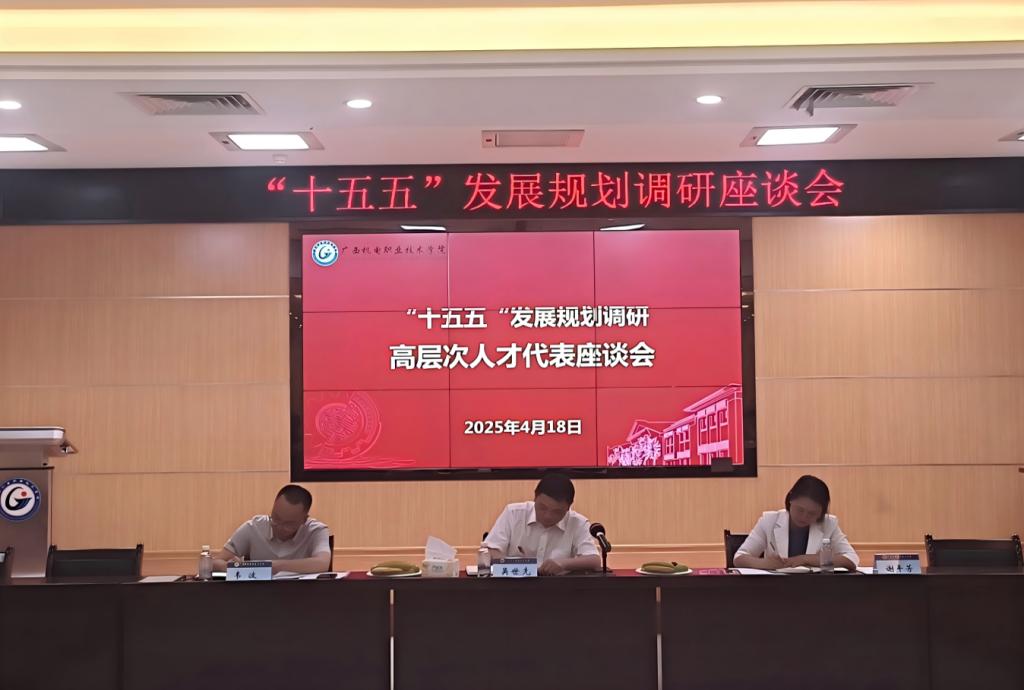 “十五五”规划编制调研从4月中旬开始,采取座谈会和书面意见征集两种方式,围绕学校“十五五”期间“建双高、升职本”的发展目标先后向学校高层次人才代表、职能部门负责人、二级学院和专业群负责人、教师代表进行了广泛意见征集,学校领导参加座谈会并与代表们深入交流。