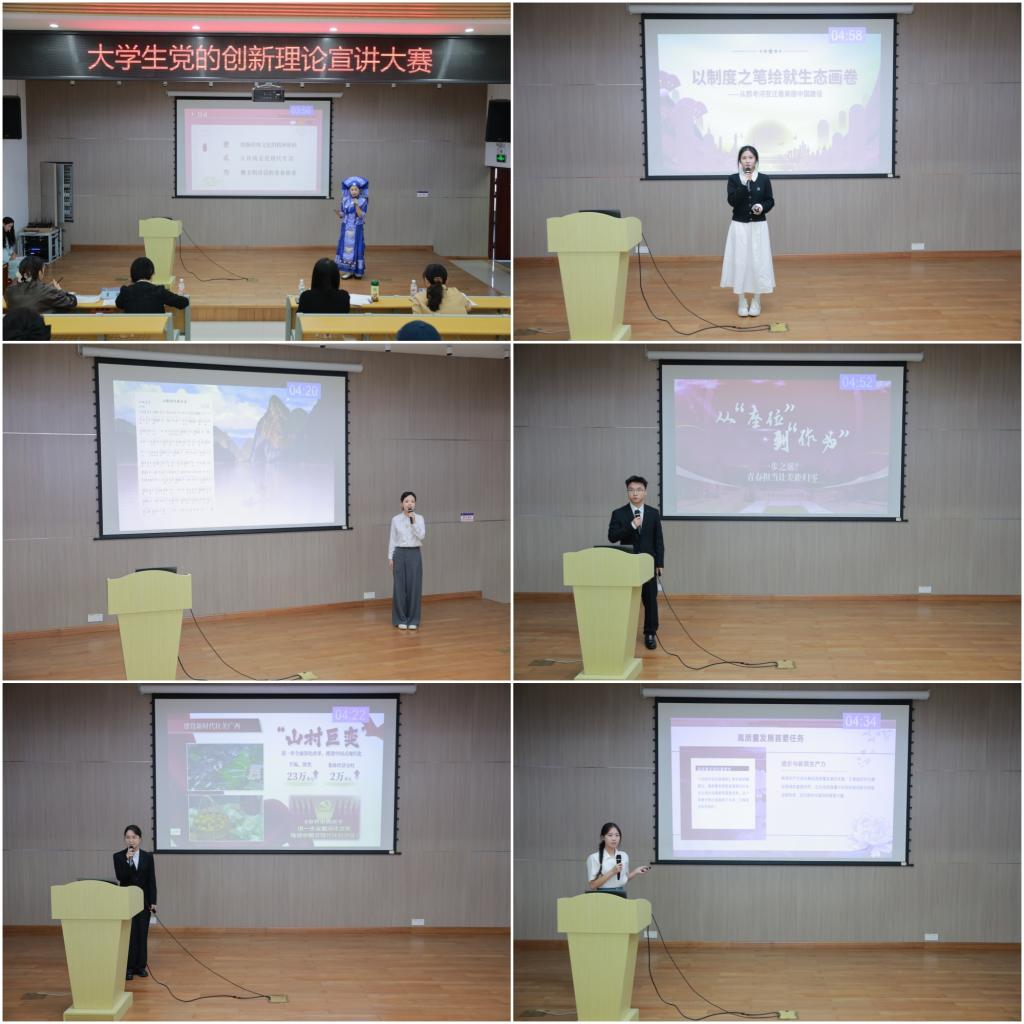 10月24日,由学校党委宣传部主办,马克思主义学院、团委联合承办的大学生党的创新理论宣讲大赛决赛在弘毅楼二楼三马讲堂顺利举行。22组参赛选手同台竞技,以生动宣讲解读理论内涵,以青春之声传递奋进力量,最终3组作品获得一等奖。