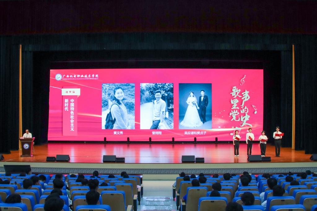 典礼结束后,陈科鹤以《歌声里的党史》为题给学员上了一节绘声绘色的主题党课。主题党课以建党百年时间线为轴,以建党初期、新民主主义革命时期、社会主义革命和建设时期、改革开放和社会主义现代化建设时期和中国特色社会主义新时代逐梦时期共五大篇章为主线,从《国际歌》的火种,到《长征组歌》的艰苦卓绝;从《英雄战歌》的慷慨激昂,到《春天的故事》的心潮澎湃;从《歌唱祖国》的热血沸腾,到新时代脱贫攻坚和疫情防控系列歌曲的温馨和感动,以史串歌、以歌叙史,通过“串讲+音乐+视频+音频+互动”的形式呈现,向学员们生动呈现了中国共产党波澜壮阔的百年奋斗历程,生动呈现党矢志不渝的为人民谋幸福,为民族谋兴的初心使命,通过“声”入人心的专题辅导,为学员们上了一堂震撼心灵的党史学习教育党课。