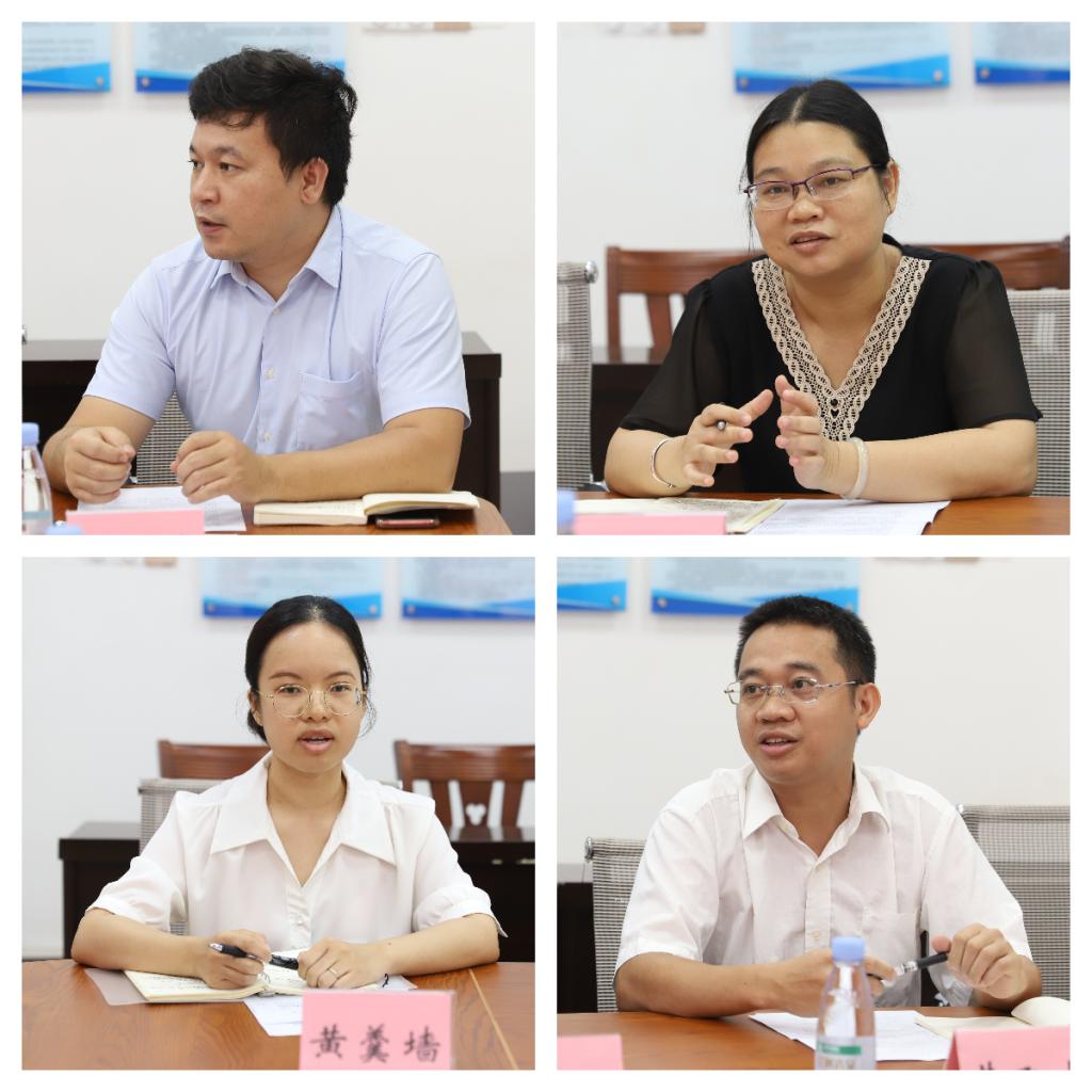 万象城官网的四位支教教师分别介绍了自己近一年的支教工作、学习和生活,并就自己在支教实践中的经验体会,所思所想进行了交流汇报。支教教师表示,深切感受到学校的关怀与期望,深感责任重大、使命光荣,将充分发挥自身专业优势,以饱满的热情继续投入帮扶工作,助力推进都安县的职业教育发展。