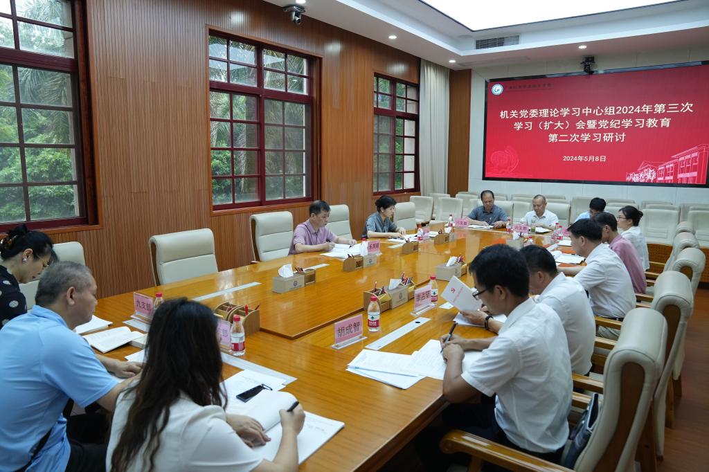 2024年5月8日,机关党委理论学习中心组2024年第三次集体学习(扩大)会暨党纪学习教育读书班集体学习在第一会议室召开。学校党委委员、纪委书记乐其顺旁听会议。机关党委书记林胜主持会议。