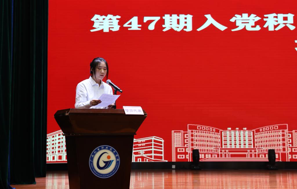 开班典礼上,电子2201班钟英佳同学作为学员代表发言。她表示将珍惜难得的学习机会,认真学习、提高理论素养,勤学苦练、增强本领,要坚定不移听党话、跟党走,用实际行动践行“让青春在以中国式现代化全面推进强国建设、民族复兴伟业中绽放绚丽之花”的青春誓言。