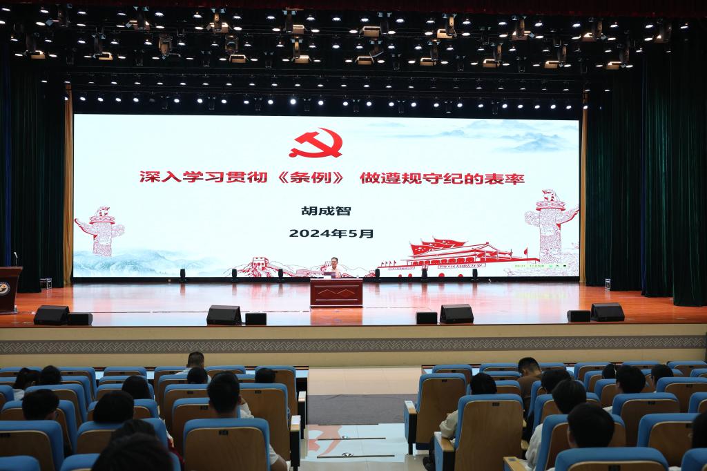开班典礼结束后,纪委办公室副主任胡成智为学员们上开班第一课——解读《中国共产党纪律处分条例》。旨在通过解读《条例》的基本内容和精神实质,使学员们深刻领悟“两个确立”的决定性意义,坚决做到“两个维护”,进一步严明党的政治纪律和政治规矩做到学纪、知纪、明纪、守纪,真正把纪律规矩转化为政治自觉、思想自觉、行动自觉。