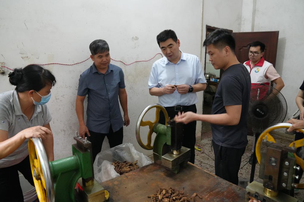 学校领导一行先后到联合村、新丰村、双桂村、旧门村、旧金村、盘古村等6个村屯帮扶点,考察调研芒编、制衣、食品、陈皮、西洋参等当地特色产业和农产品深加工的发展情况,座谈听取驻村第一书记利用专项帮扶资金开展产业帮扶项目的情况汇报。