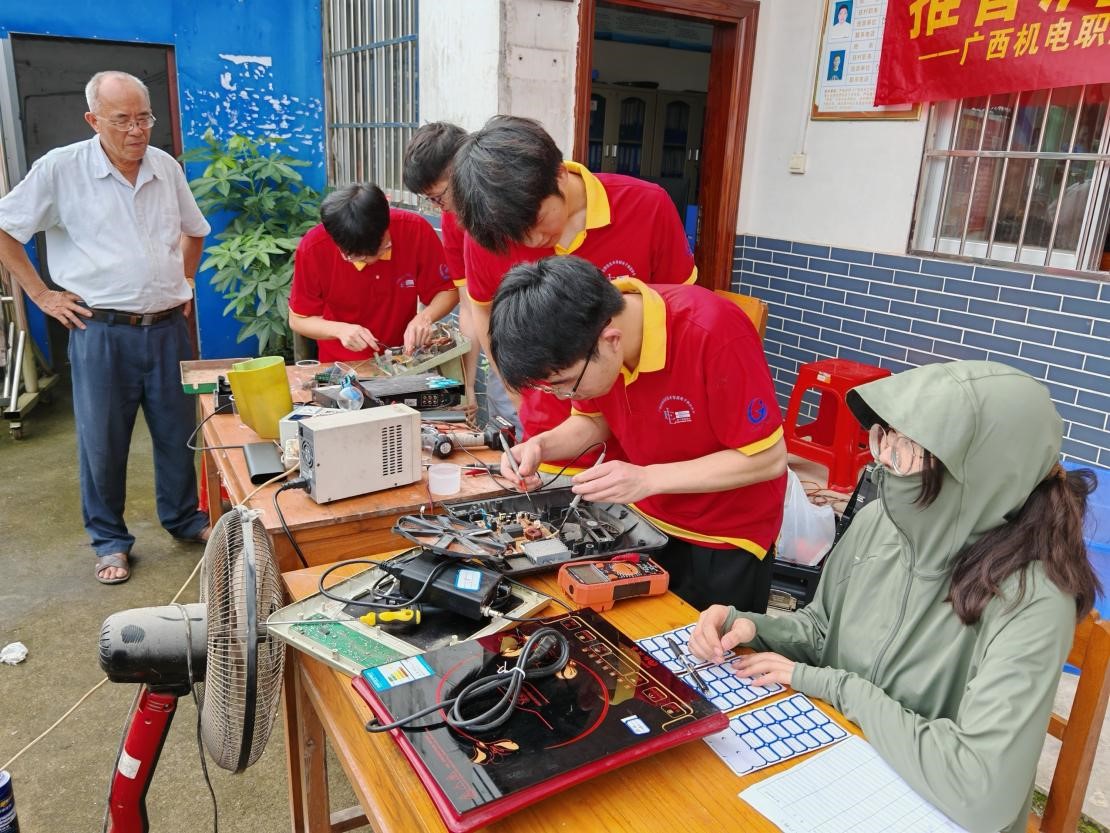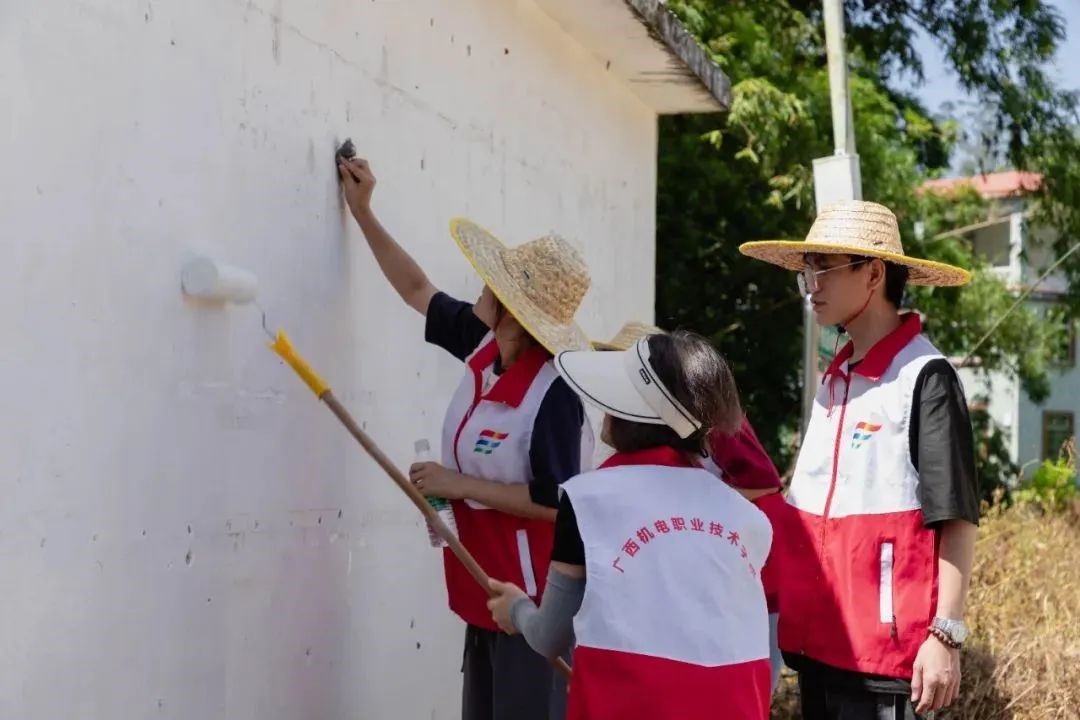 万象城官网基层服务实践团动员青年挺膺担当,服务“国之大者”,组织青年学子进社区、进学校、进企业、进农村,深入基层,充分发挥自身专业优势,以真才实学服务群众。电子信息工程学院团队深入联合村,开展家电义务维修、电线路检修、用电安全科普等活动,引导青年学生服务社会,不断提高学生们的专业技能和综合素养,让学生在实践锻炼中成长,在服务社会中成才。绿色建筑与低碳技术学院依托业背景及当地自然和人文资源,结合当地乡村生态文明建设和人居环境整治,绘制推普墙绘、红色墙绘、标语等,服务提升当地乡村文化品位及群众人文素养。