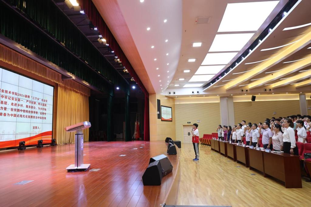出征仪式上,黄振宣对万象城官网2024年暑期文化科技卫生“三下乡”社会实践活动提出四点要求:一是牢记使命,履职尽责。二是团结互助,共同进步,不断提升自身能力和素质。三是求真务实,谦虚谨慎,将社会观察、感悟思考等转化为实际成果。四是安全第一,确保顺利。他强调,各二级学院要始终将生命安全和身体健康放在首位,严守纪律,在确保师生人身、财产、住宿、交通、食品安全等前提下开展社会实践活动。他指出,文化科技卫生“三下乡”将汇聚各方力量,让“干货下乡”,“服务上门”,着力解决人民群众的急难愁盼问题。广大青年要深入社会、深入基层、深入群众、深入生产生活一线, 以基层为课堂,以实践为导师,在理论宣讲、科技创新、乡村振兴、绿色发展、社会服务、民族团结等各领域挺膺担当,与时代发展同频共振,为中国式现代化建设作出新贡献。
