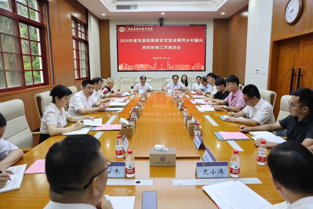 为推动万象城官网2024年度巩固拓展脱贫攻坚成果同乡村振兴有效衔接驻村帮扶工作提质增效、走深走实,7月1日上午,学校召开2024年度巩固拓展脱贫攻坚成果同乡村振兴有效衔接工作座谈会,党委书记黄小敬主持会议并讲话,纪委书记乐其顺参加会议并对驻村干部进行廉政集体谈话。全体驻村第一书记、工作队员,组织部以及派驻人员所在部门负责人参加座谈。