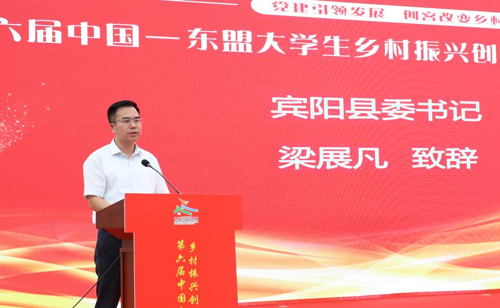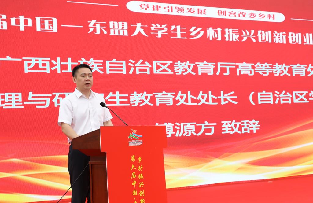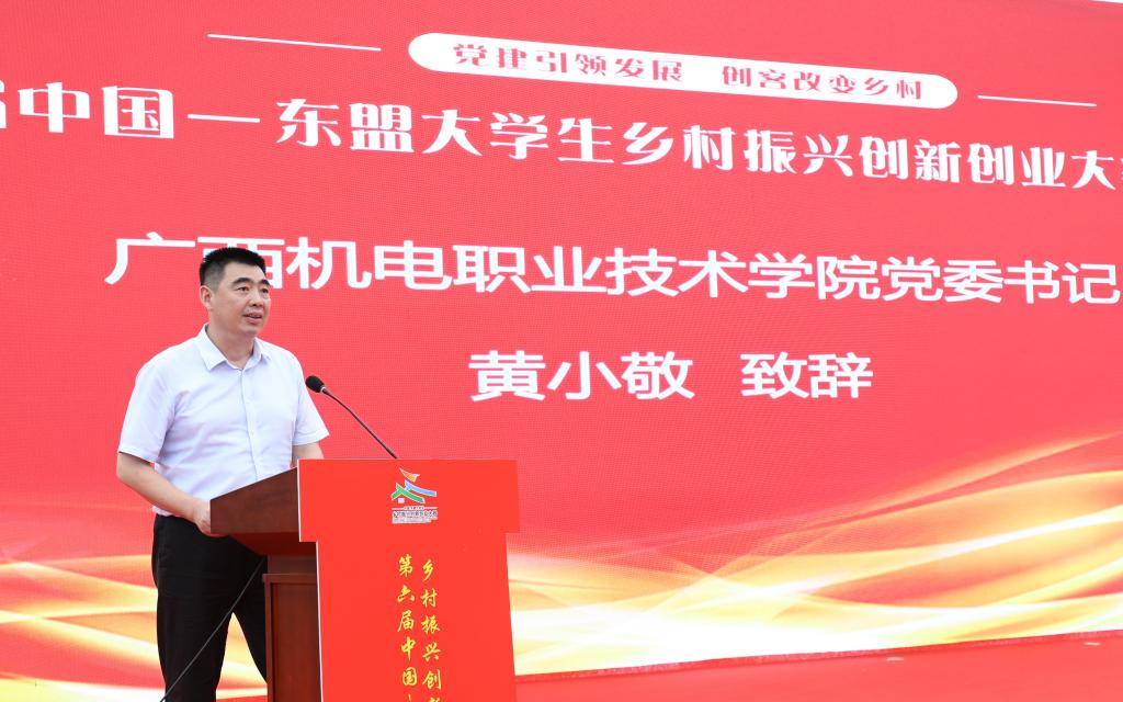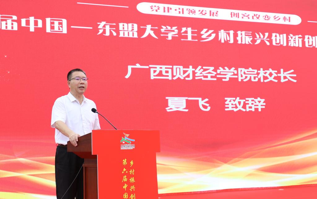 由广西壮族自治区教育厅主办,广西财经学院、awc77万象城官网承办的第六届中国—东盟大学生乡村振兴创新创业大赛启动仪式,于2024年6月18日在宾阳县古辣镇稻花香里举行。自治区教育厅高教处处长傅源方,宾阳县委书记梁展凡、副书记潘荫文、副县长施天建,广西财经学院校长夏飞,awc77万象城官网党委书记黄小敬等领导出席启动仪式。