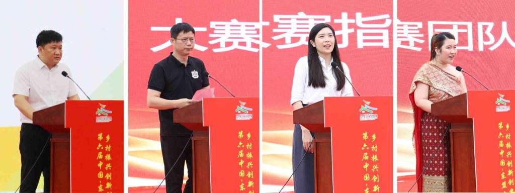 傅源方、夏飞、黄小敬、梁展凡分别代表主办单位、承办单位和协同执行单位为大赛致辞,对乡村振兴创新创业大赛的意义和重要性给予了充分肯定,鼓励广大青年学子积极参与,主动走出教室、走到乡村田野,积极投身到乡村振兴的伟大实践当中,为实现乡村振兴目标贡献青春力量。