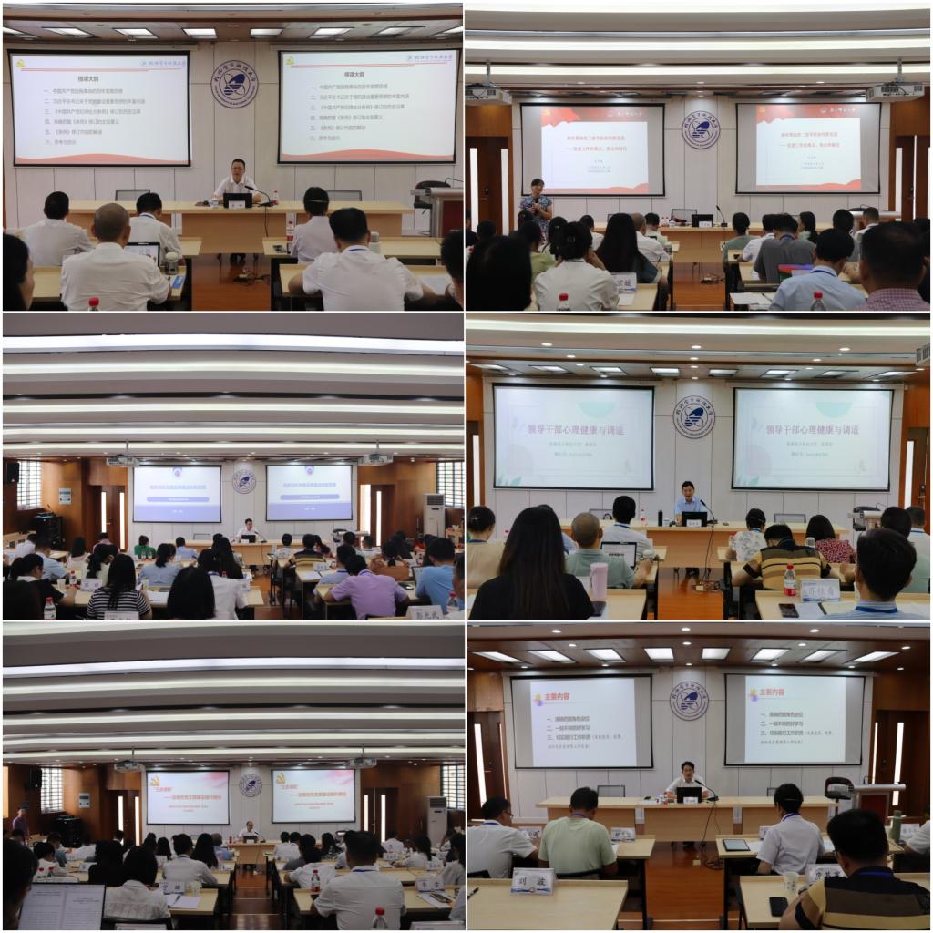 为期5天的培训,采用专题授课、现场教学、分组研讨、分享交流等丰富多样的形式开展。在专题教学环节,桂林电子科技大学马克思主义学院党委书记岳峰作题为“学思想,强党性,学条例,守党纪——谈新时代党务干部的理想信念与纪律教育”的专题报告;广西师范大学校工会常务副主席刘月娥作题为“新时期高校二级学院如何抓党建——党建工作的难点、热点和路径”的专题教学;广西交通职业技术学院学工处副处长吴丹作题为“高职院校党建品牌建设创新思路”的专题教学;桂林电子科技大学学工处副处长张华东作题为“党务干部情绪管理与心理压力调适能力提升”的专题教学;桂林电子科技大学机关党委书记、组织部副部长陈志新作题为“‘三步进阶’——谈高校党支部建设提升路径”的专题教学;自治区党委教育工委组织部一级主任科员贺志超作题为“提高站位、善于学习、勇于担当——争做新时代优秀党务工作者”的专题教学。6位专家学者的讲授,从党务干部的理想信念教育、党纪学习教育、高校二级学院党建与业务“一融双高”工作、高校党支部标准化规范化建设、高校党建“双创”品牌建设、党务干部情绪管理与心理压力调适、如何争做新时代优秀党务工作者等不同角度,为学员带来6场高质量党的创新理论学习、党务干部履职能力提升专题辅导。
