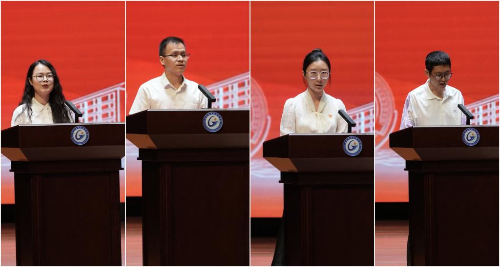 自治区“三全育人”综合改革示范院系代表、人工智能技术学院党委书记黄日木老师,“机电最美教师”代表智能焊接技术学院文小满老师、“课程育人”代表人工智能技术学院蒋桂文老师、“实践育人”代表智能焊接技术学院黄华椿老师、“心理育人”代表绿色建筑与低碳技术学院吴可敏老师、“管理育人”代表电子信息工程学院赖韦竹影老师、“服务育人”代表后勤管理处覃为华老师分别作了交流发言,分享各自在“三全育人”工作中的心得体会,勉励全校教师践行教育家精神,坚定理想信念、严守道德情操、提升育人智慧、秉持躬耕态度、涵养仁爱之心、永葆弘道追求,努力做“经师”和“人师”相统一的“大先生”。