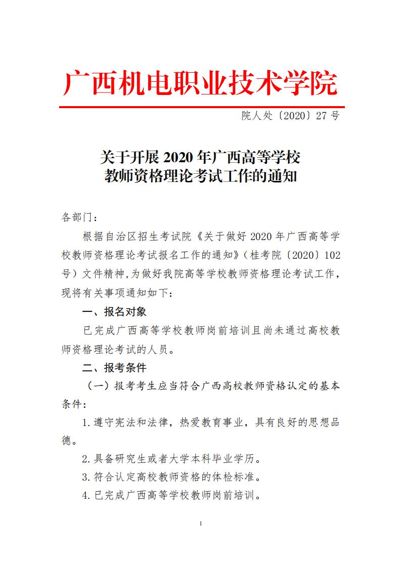 关于开展2020年广西高等学校教师资格理论考试工作的通知