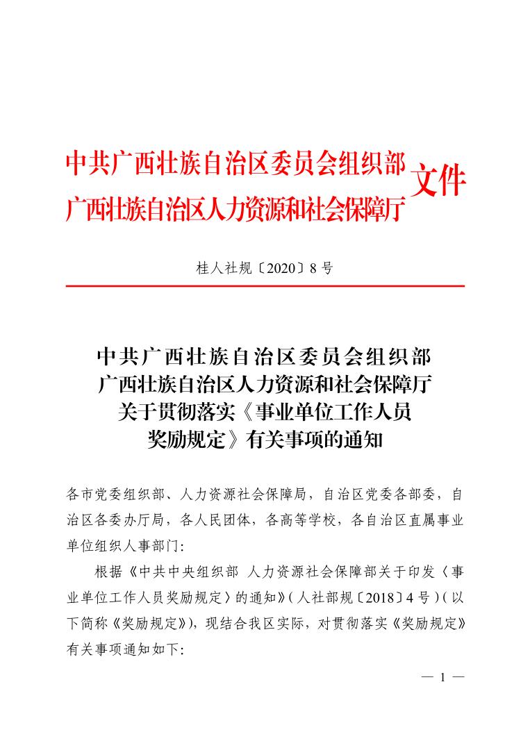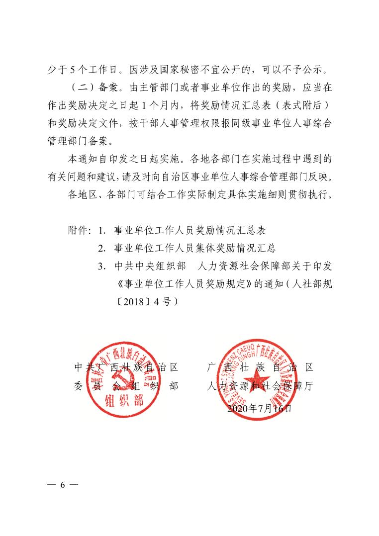 中共广西壮族自治区委员会组织部 广西壮族自治区人力资源和社会保障厅 关于贯彻落实《事业单位工作人员奖励规定》有关事项的通知