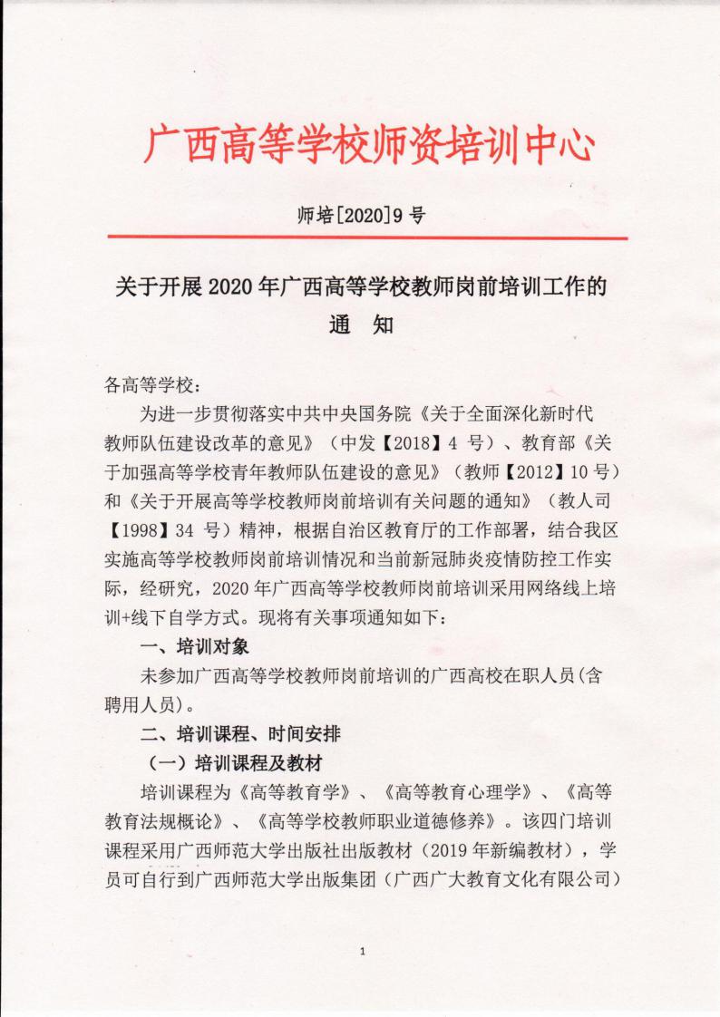 关于开展2020年广西高等学校教师岗前培训工作的通知