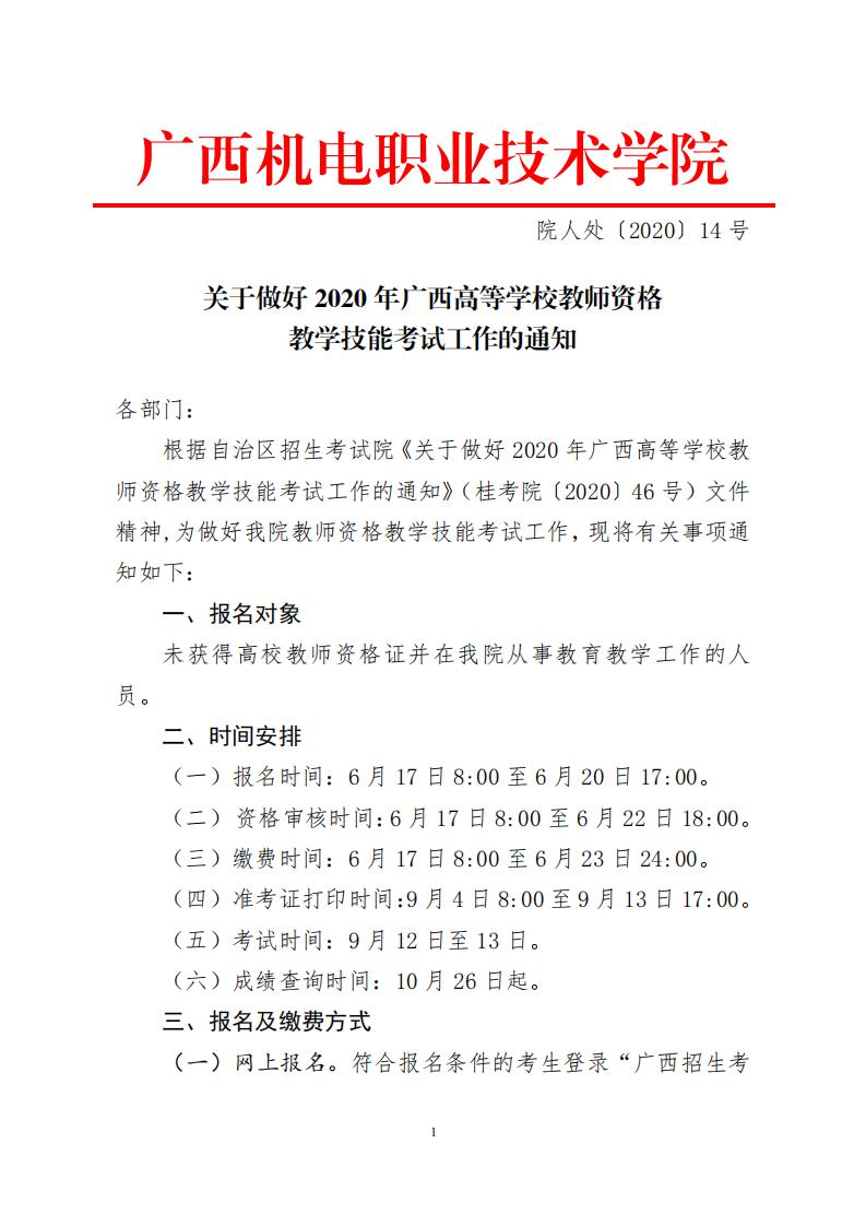 关于做好2020年广西高等学校教师资格教学技能考试的通知