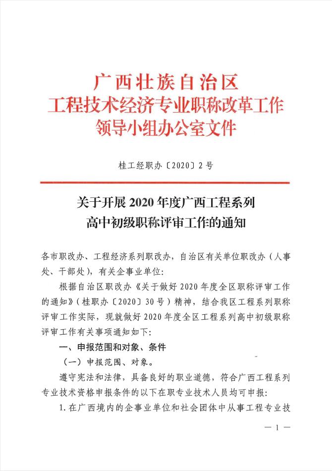 关于开展2020年度广西工程系列高中初级职称评审工作的通知