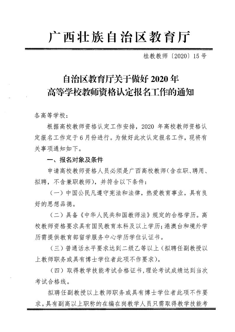 自治区教育厅关于做好2020年高等学校教师资格认定报名工作的通知