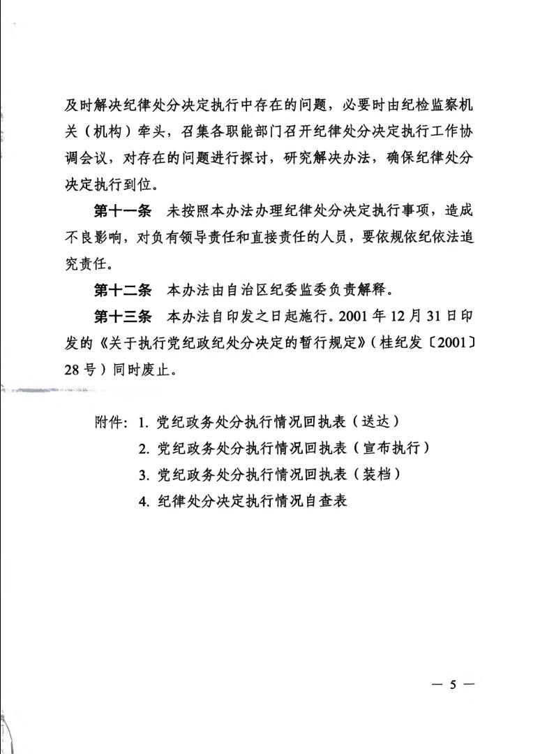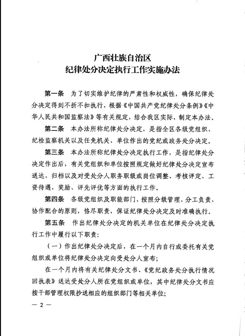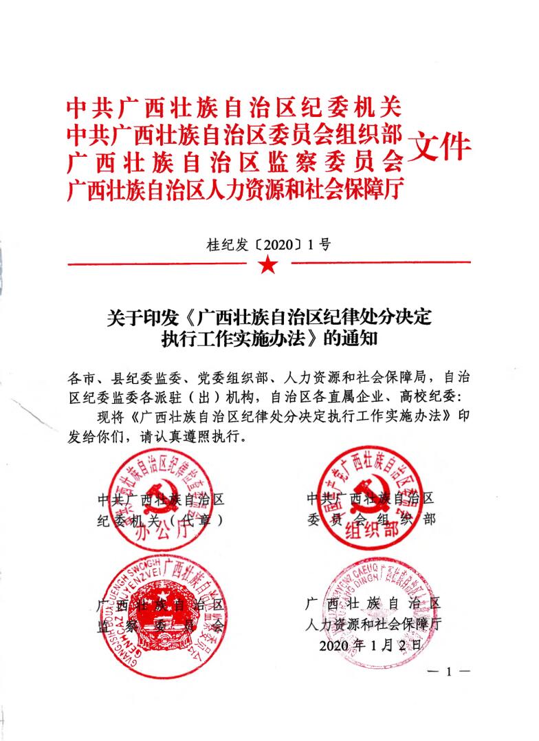关于印发《广西壮族自治区纪律处分决定执行工作实施办法》的通知