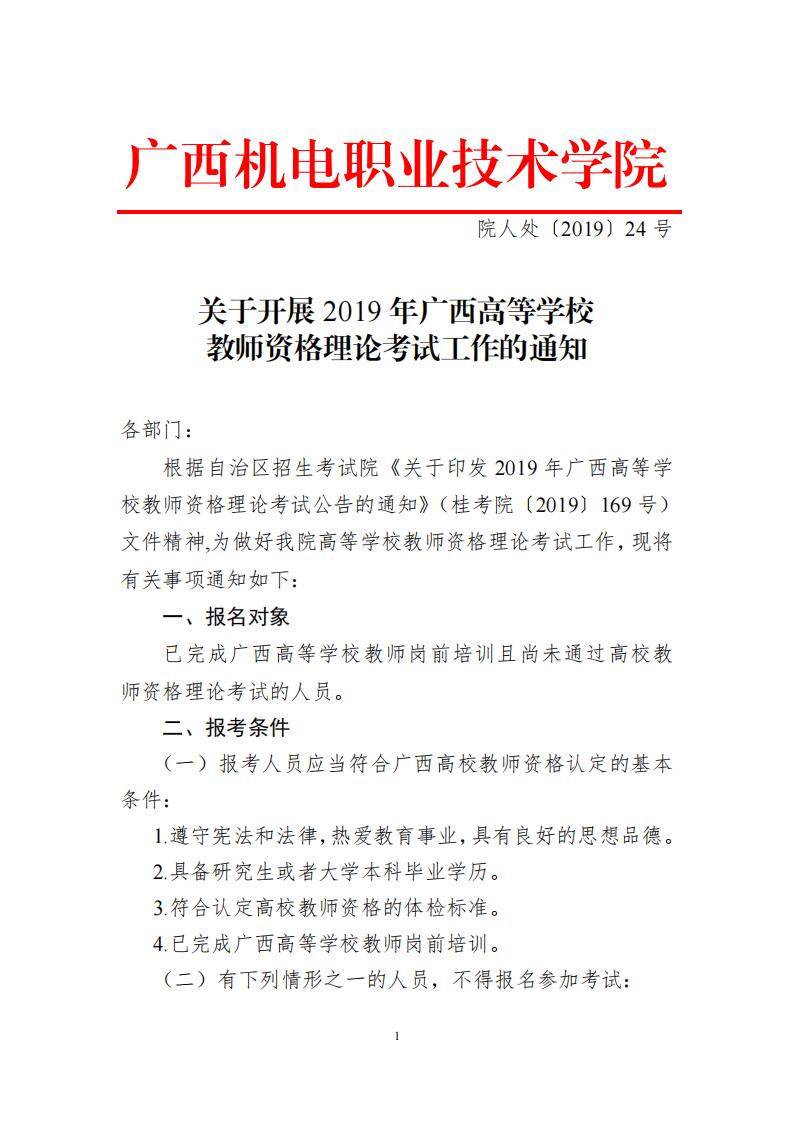 院人处〔2019〕24号关于开展2019年广西高等学校教师资格理论考试工作的通知