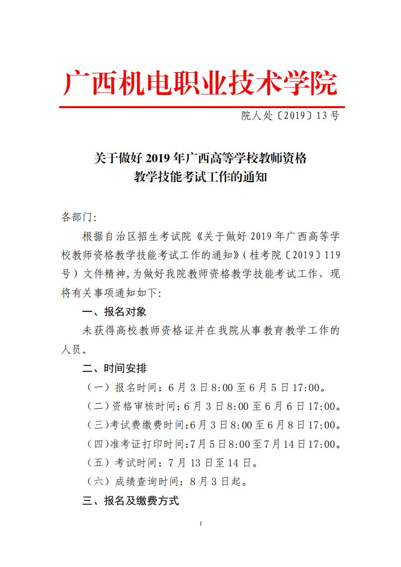 关于做好2019年广西高等学校教师资格教学技能考试工作的通知