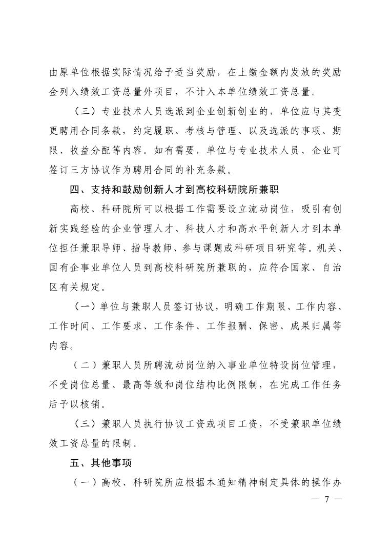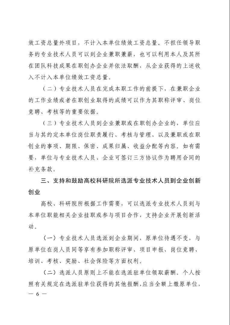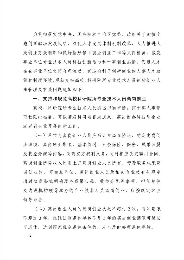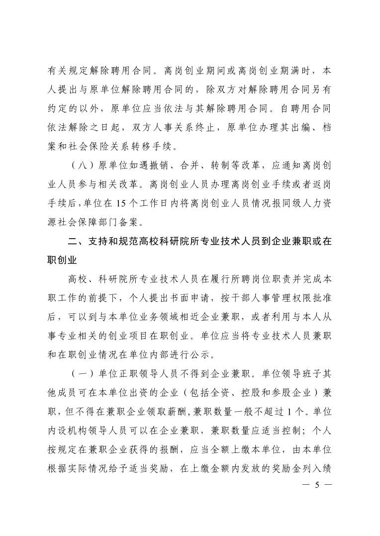 关于支持高校科研院所专业技术人员创新创业人事管理及有关问题的通知