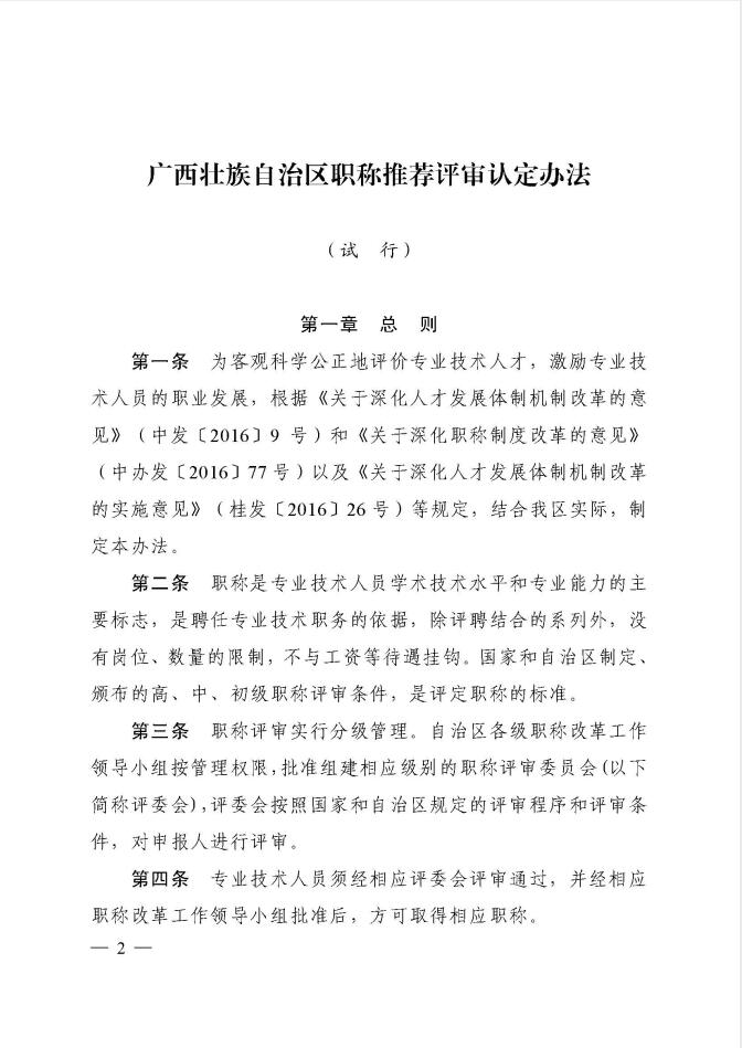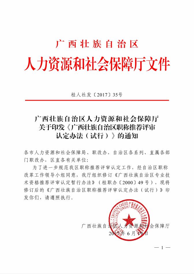 广西壮族自治区人力资源和社会保障厅关于印发《广西壮族自治区职称推荐评审认定办法(试行)》的通知