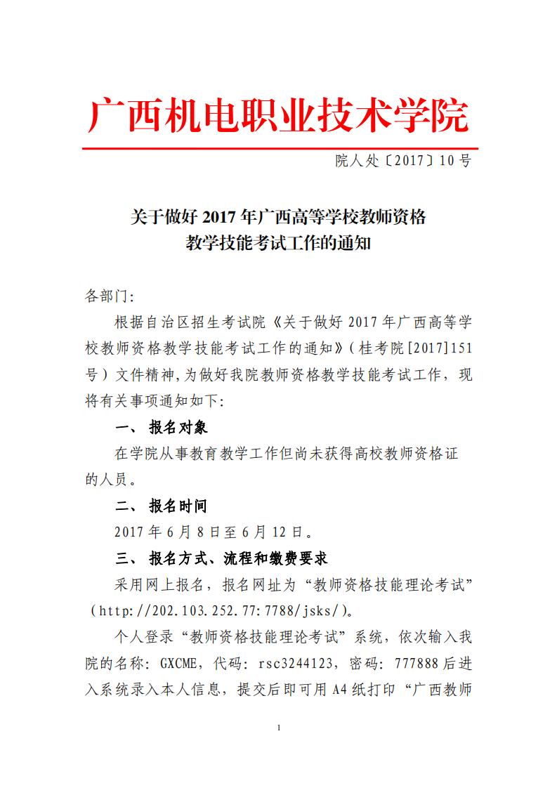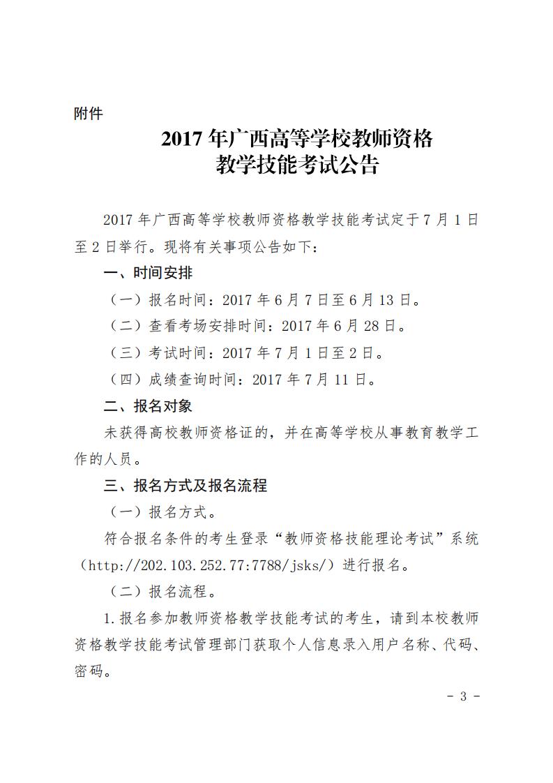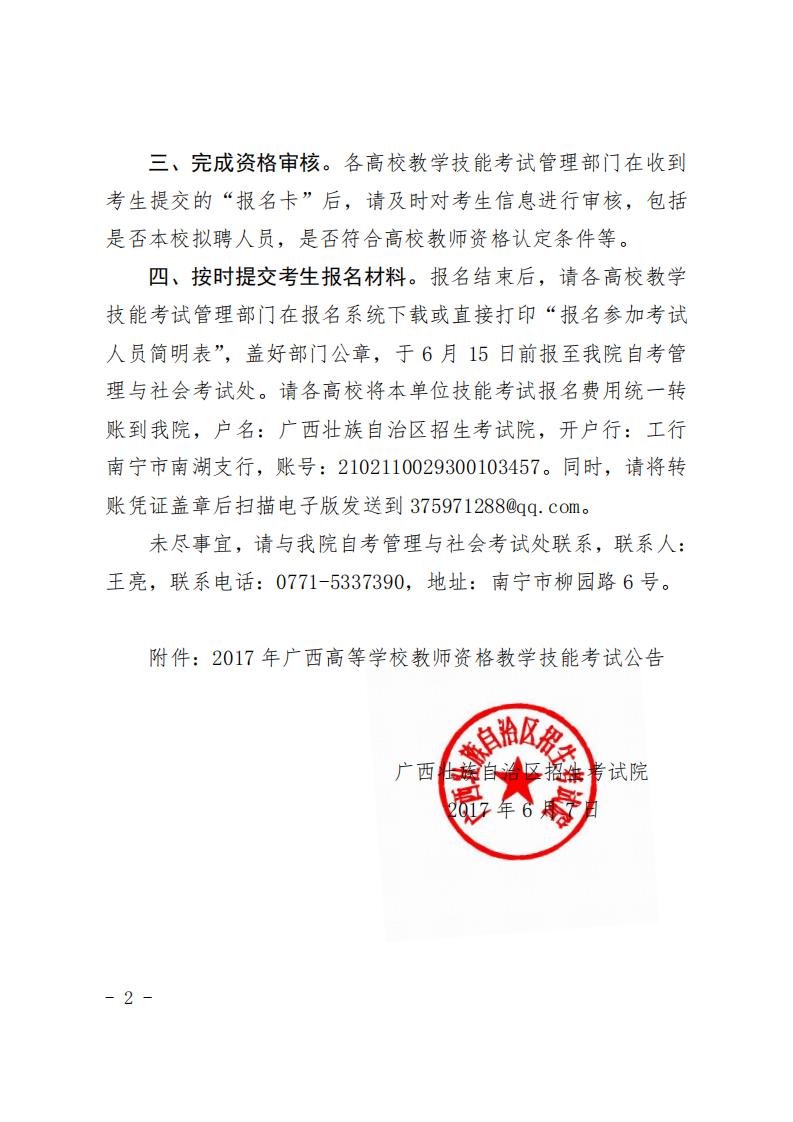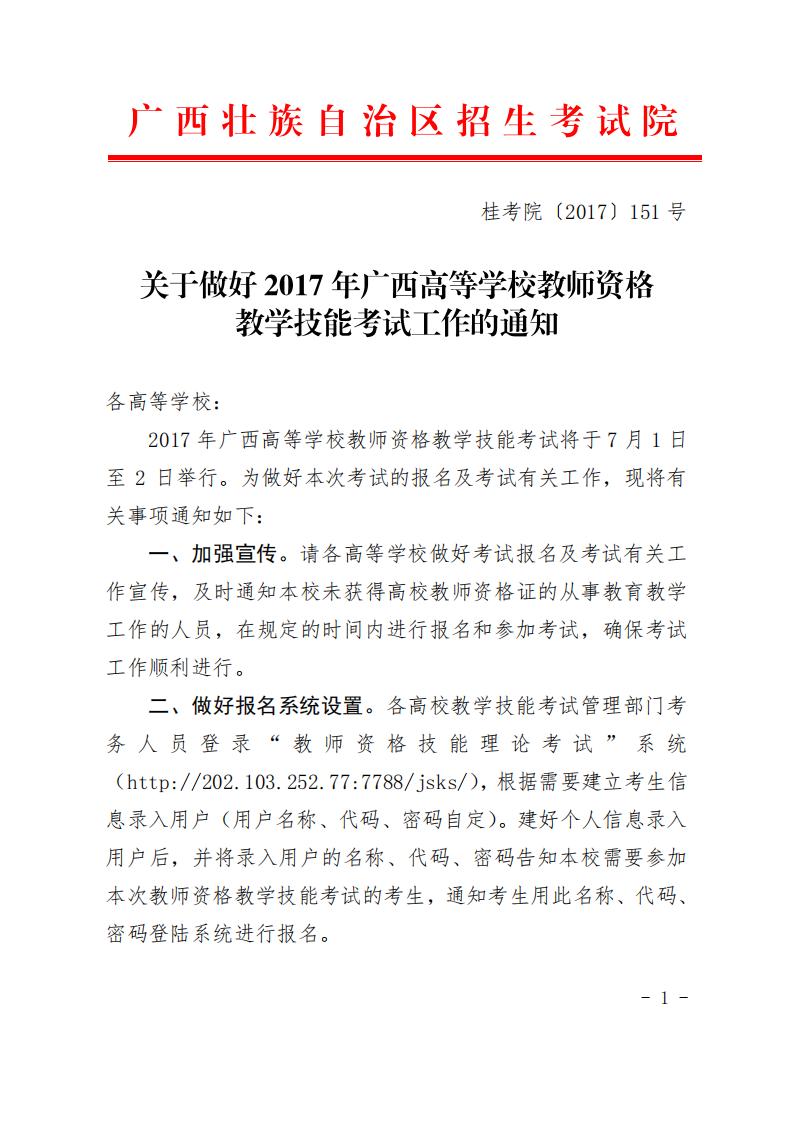 关于做好2017年广西高等学校教师资格教学技能考试工作的通知