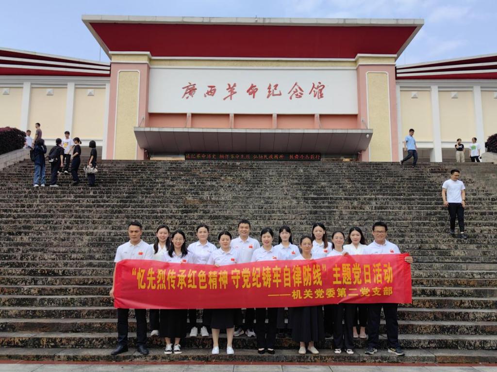 4月23日,机关党委第二党支部前往广西革命纪念馆开展“忆先烈传承红色精神 守党纪筑牢自律防线”主题党日活动。党员同志通过参观广西革命纪念馆各个展厅的展览、瞻仰烈士纪念碑和烈士英名墙、集体鞠躬并向烈士默哀、为党员过政治生日、重温入党誓词等,缅怀革命先烈,弘扬英烈精神,切实筑牢为党和人民奋斗终身的信念。最后,支部党员集中在纪念馆里的爱心书屋,宣传委员苏钊同志带领大家逐章逐条学习了《条例》第一章的条文内容,并结合工作实际组织大家进行研讨,推进党纪学习教育“实”起来。