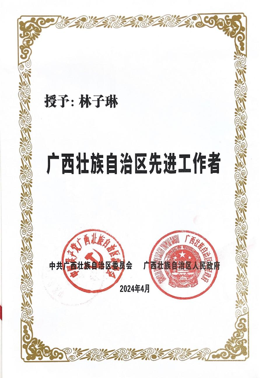 4月30日上午,2024年全区庆祝“五一”国际劳动节暨表彰自治区劳动模范和先进工作者大会在广西人民会堂举行,自治区党委、自治区人民政府表彰了一批劳动模范和先进工作者。万象城官网马克思主义学院教师林子琳荣获2024年广西壮族自治区先进工作者荣誉称号。