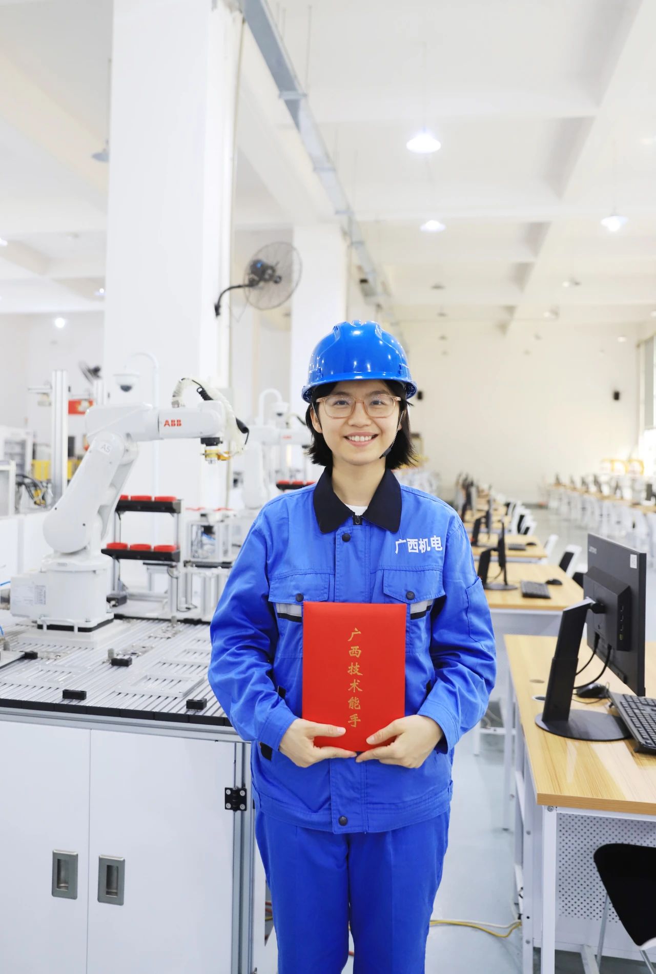 教师只有诚心诚意地自我教育,才能诚心诚意地去教育学生。她深知终身学习是教师的自我修养,只有不断学习才能与时俱进,才能做一名合格的人民教师。在忙碌的教学工作中,她总能挤出时间提升自我,从不放弃任何一个学习的机会,积极参加教学技能提升、专业研讨、师德研修等培训。为了参加一个新赛项,在没有设备练习的情况下,她逐字逐句的研究设备资料,每天利用课余时间,把教程里的所有案例程序进行反复操练,根据设备图片做原理推敲和场景设想,反复在头脑中演练比赛过程。枯燥的练习难免让人心生退却,但她坚持了下来并赢得了时间。在第四届广西智能制造应用技术技能大赛上,她获得了仪器仪表制造工赛项一等奖,同时获得“广西技术能手”称号。这次参赛带给她的不仅仅是知识和经验的积累,更重要的是用坚持和拼搏的精神为学生以身示教,用实际行动诠释着教书育人的初心。