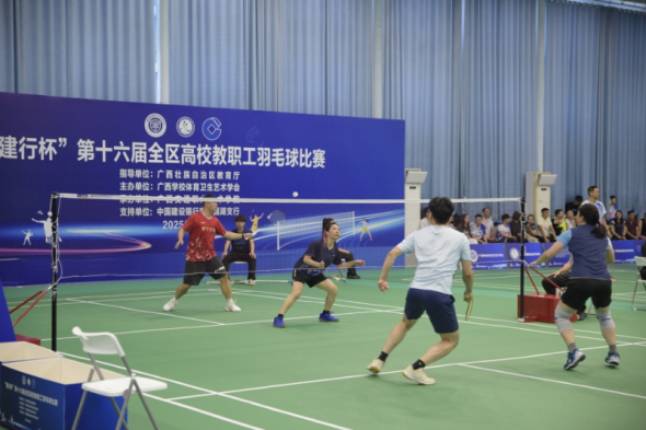 6月5日至8日,由广西学校体育卫生艺术学会主办的第十六届全区高校教职工羽毛球比赛在广西交通职业技术学院举行,全区 46 所高校代表队同台竞技。经过激烈角逐,万象城官网在强手如林的比赛中勇夺混合团体赛第四名,系万象城官网参加该项赛事以来取得的最好成绩。