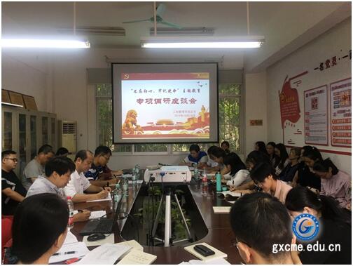 2019年9月25日,工商管理系市场营销专业群党支部在系会议室开展“不忘初心、牢记使命”主题教育研讨会。 会上确立了“不忘初心、牢记使命”主题教育工作方案总体要求,提出“理论学习有收获...