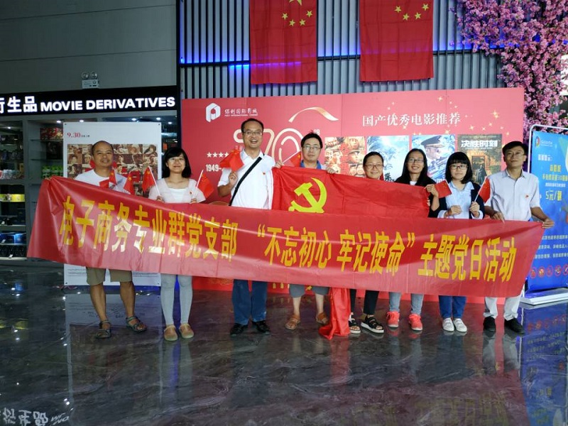 10月18日下午,在新中国成立70周年之际,工商管理系电子商务专业群党支部全体党员走进电影院,以观看电影《我和我的祖国》和专题学习的方式开展“不忘初心、牢记使命”主题党日。 电子商务专...