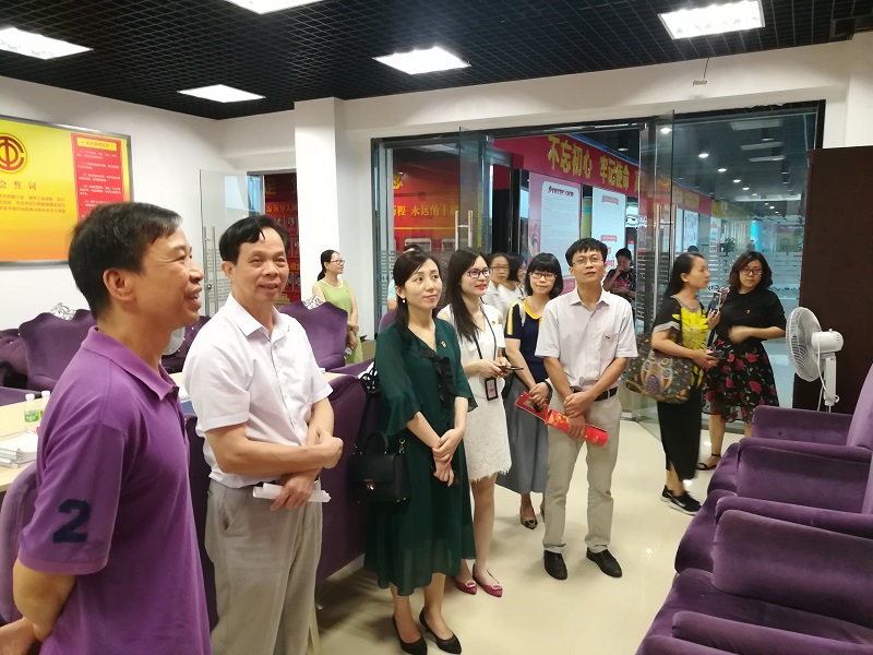 当天,工商管理系教工党支部教师党员一行17人在华南城党委副书记黄焕洋的带领下,参观了自治区示范党员活动室--华南城党员活动室,相互交流了党建工作经验,并与华南城的高级管理人员开展了深入的座谈,座谈会上,华南城的人力行政高级经理姚火娟向党员老师简单介绍了华南城的发展概况、党建工作情况、东盟国家产品体验馆的运营模式和企业的用人需求情况等,随后双方就如何加强校企合作、开展实训教学改革等方面的进行了深入的交流。
