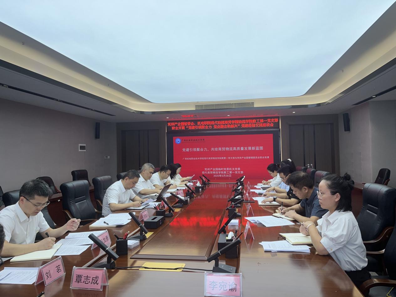 上午11时15分,教工第一党支部一行来到凭祥产业园管委会321会议室,与园区管委会及各机关党支部党员代表共同开展党建经验交流座谈会。座谈会上,双方共同学习了习近平总书记关于边境地区发展、产业园区建设以及教育事业发展的重要讲话精神,进一步强化了党员的政治意识和使命担当。随后,党支部书记林佳讲授了《党建引领聚合力,共绘商贸物流高质量发展新蓝图》专题党课,深入阐述了党建在推动商贸物流产业发展中的重要作用。凭祥产业园临时党委机关党委专职副书记闭剑华介绍了园区党组织建设情况及党建工作特色,强调党建在推动产业发展中的引领作用。林佳则分享了学院在党建与教学融合方面的创新举措,双方就如何通过党建引领促进校地合作进行了深入探讨,明确了未来合作的方向和重点。