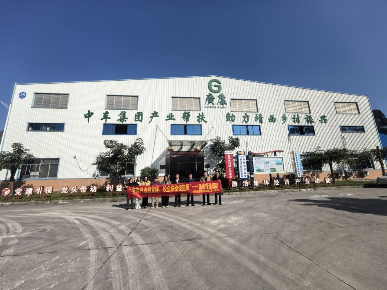 上午9点,调研团队来到靖西市广康食品有限责任公司。在经营部经理农彩蝶的陪同下,团队深入参观了生产车间。党员骨干们积极了解产品加工流程,学习了解“党员示范岗+技术攻坚组”的帮扶模式,以及地方政策支持所取得的实际成效。结合企业帮扶部署,团队与企业党员进行了座谈交流,针对发展中的瓶颈问题,提出了“党建+专业+产业”的综合解决方案,计划建立支部共建机制,组建党员攻坚小组,推动校企深度融合。